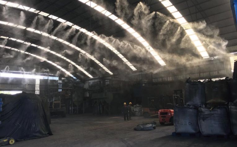 將“的凈”工業除臭劑加入入水管道,通過噴淋頭霧化后除臭